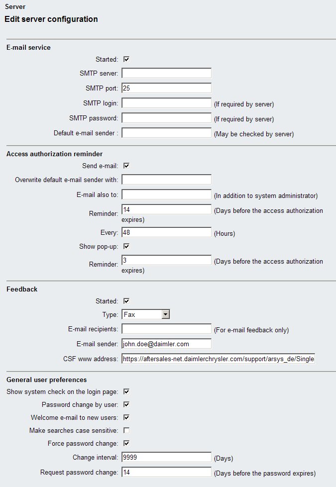 In this case you might find it helpful that all the screens show statistic information about the number of access authorizations assigned to users and workshop. This should help you make the best out your Daimler server access authorizations.