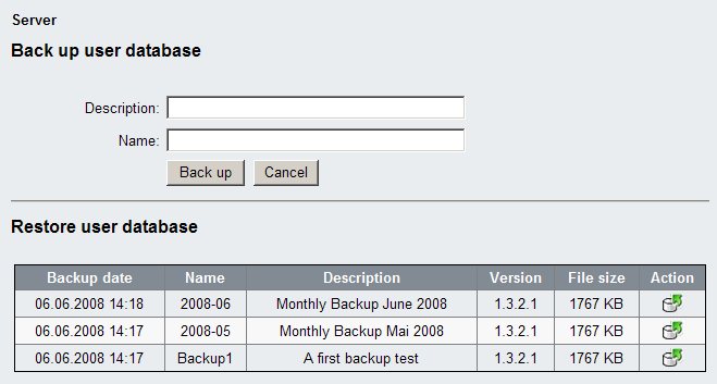 | Server Management -> Backup and Restore | x | Only for server administrators | ||